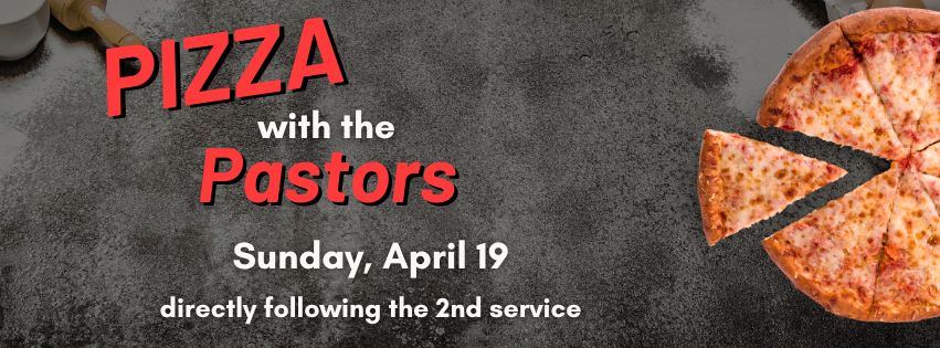 Join us on April 19 for Pizza with the Pastors—a relaxed and welcoming opportunity for those newer to our church to connect. After the second service, we’ll gather for lunch, enjoy some great pizza, and spend time getting to know our pastoral staff in a casual setting. It’s a perfect chance to ask questions, hear more about the heart of our church, and build meaningful relationships. We’d love to have you there!